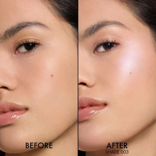 1. 以Dior 16號專業後台胭脂掃於面部需要突顯輪廓的部位掃上恆久貼肌亮采蜜粉餅。